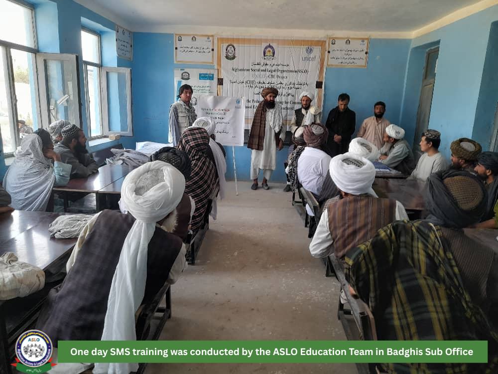 The ASLO Office, under the UNICEF CBE Project, conducted a one-day training program for members of School Management Shuras (SMS) in the districts of Bala...